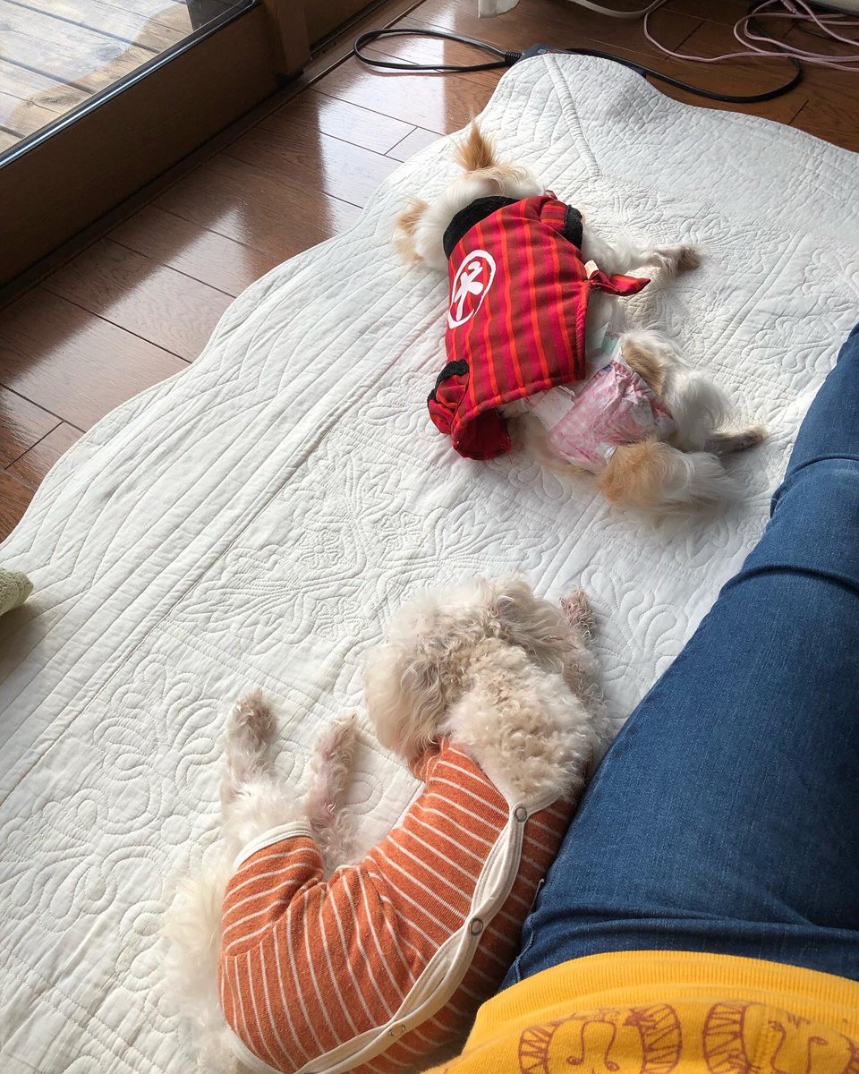 うちの犬たち、人間よりホットカーペットに弱い🤣🤣🤣 https://t.co/BVfpVGqoud